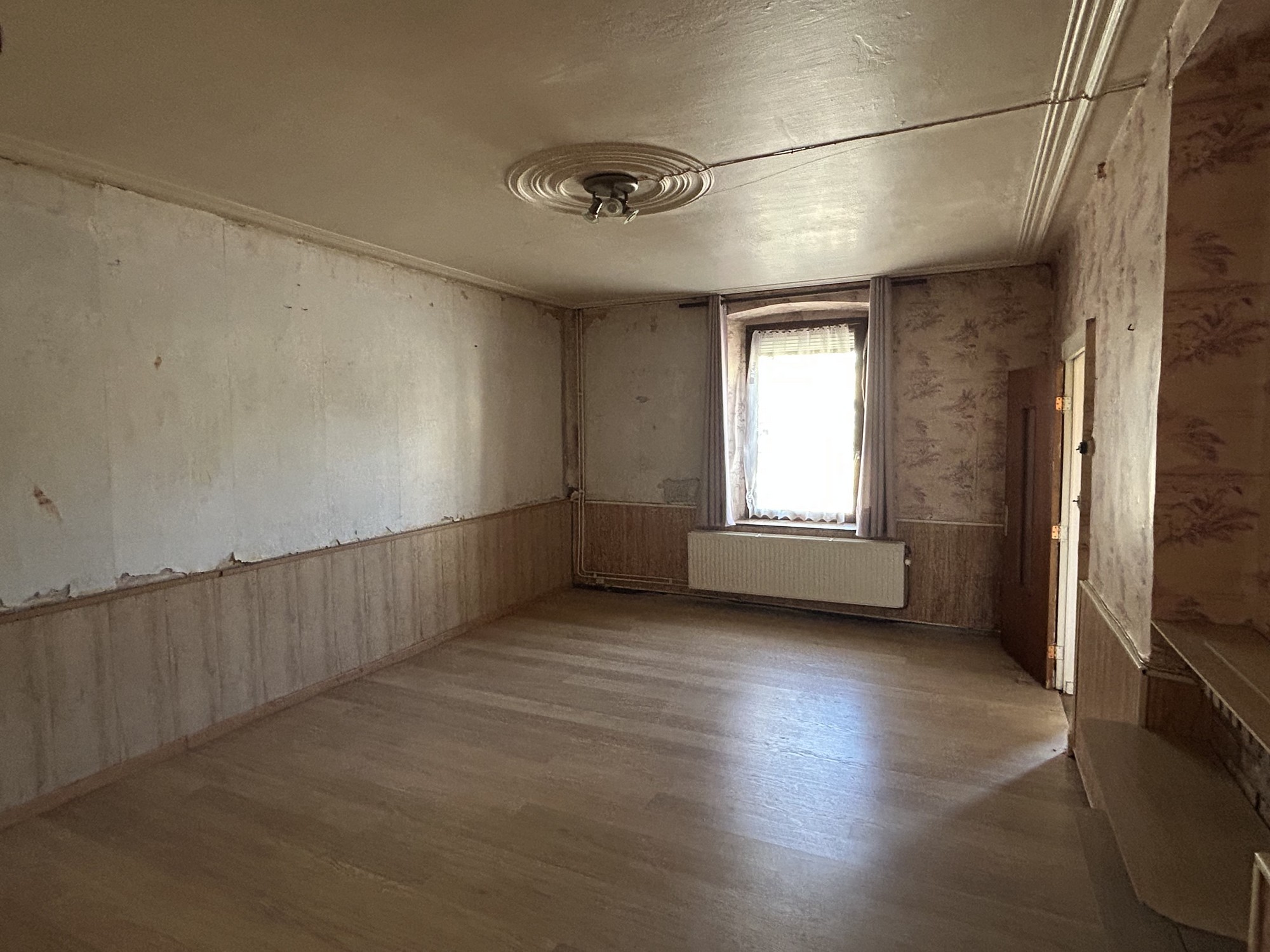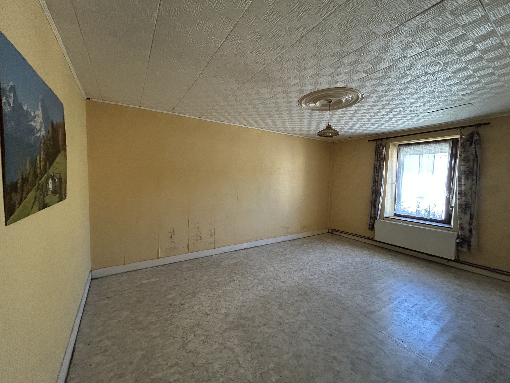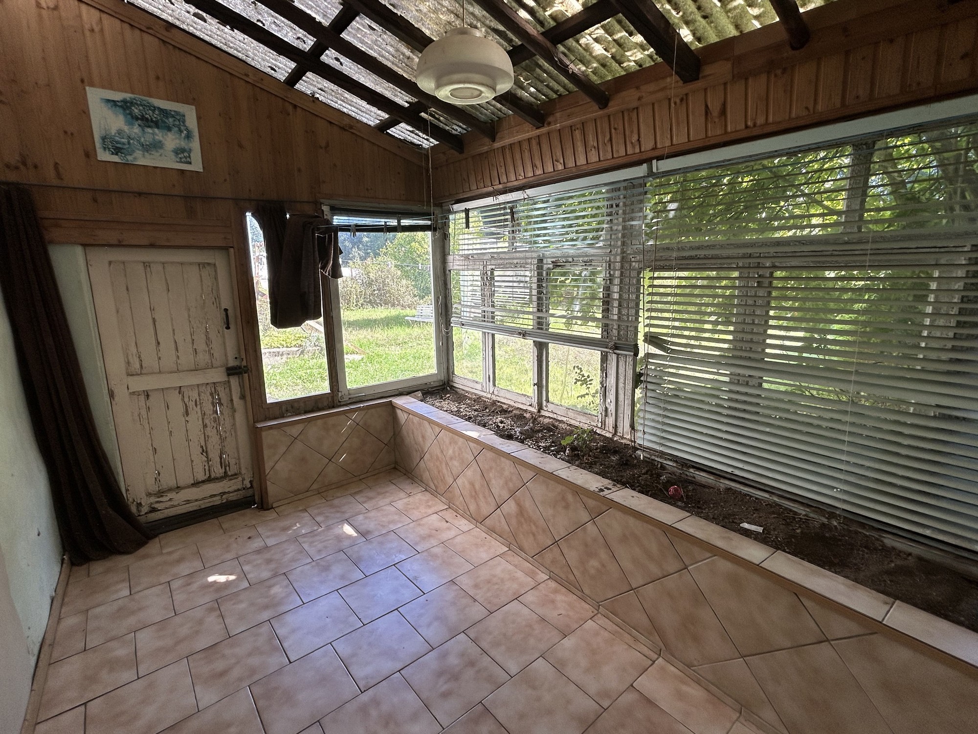 Rez-de-chaussée : Hall d’entrée, pièce pour cuisine, salle à manger, salon, WC, salle de douche, chaufferie, étable, grange, garage, "véranda"