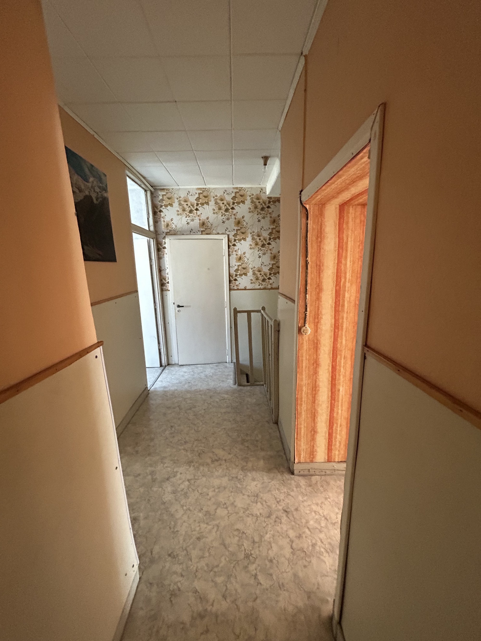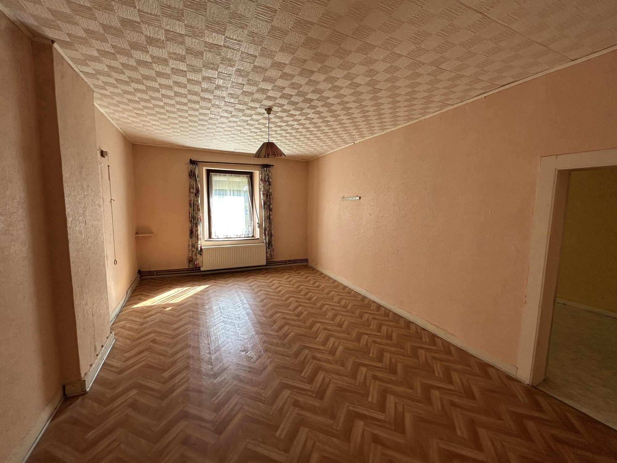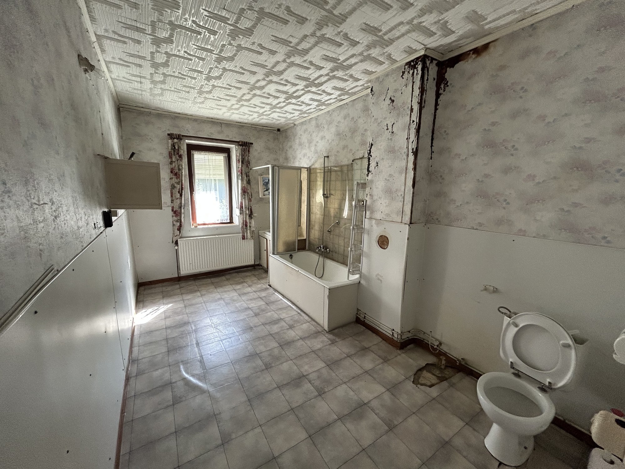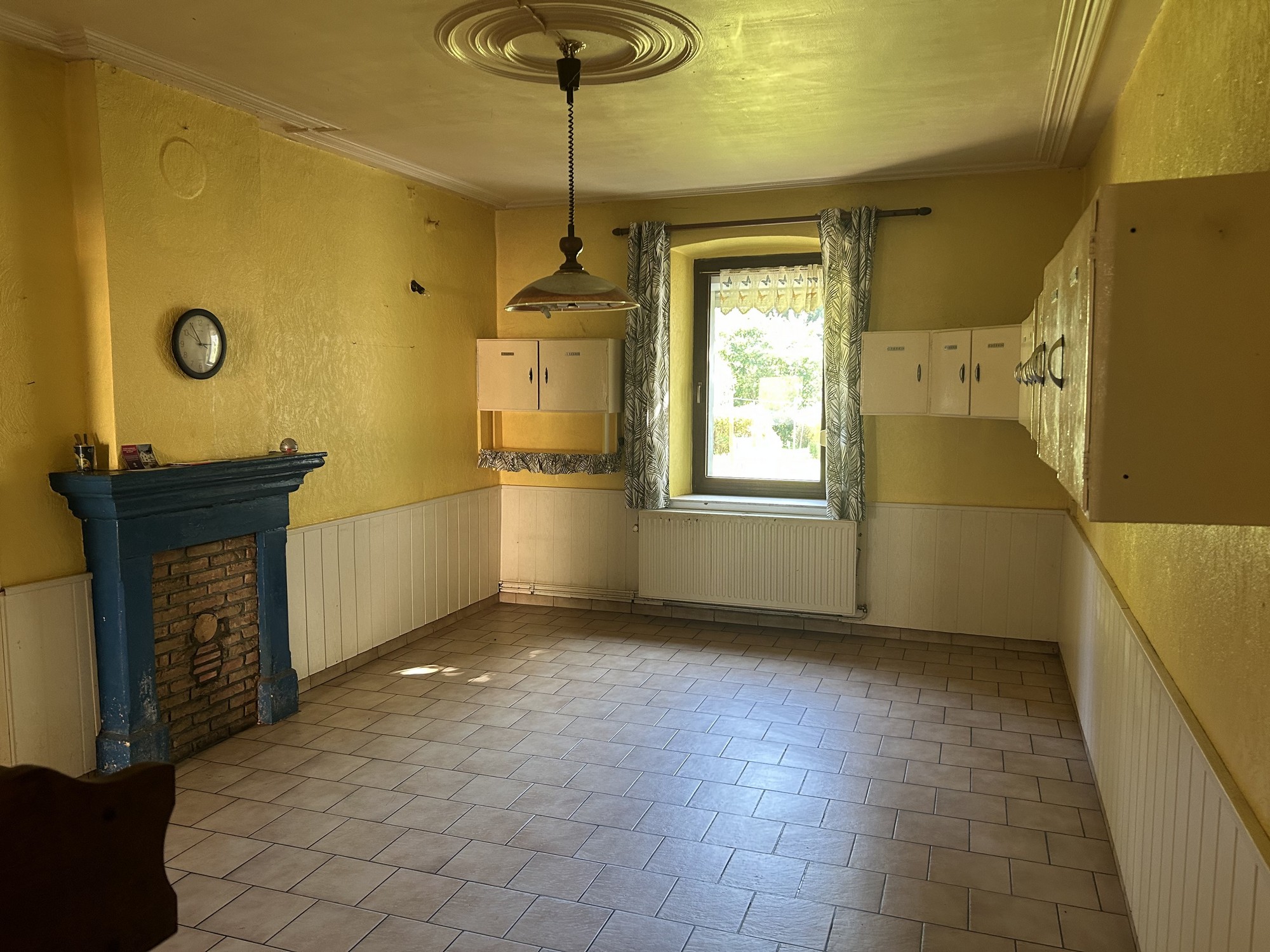 Rez-de-chaussée : Hall d’entrée, pièce pour cuisine, salle à manger, salon, WC, salle de douche, chaufferie, étable, grange, garage, "véranda"